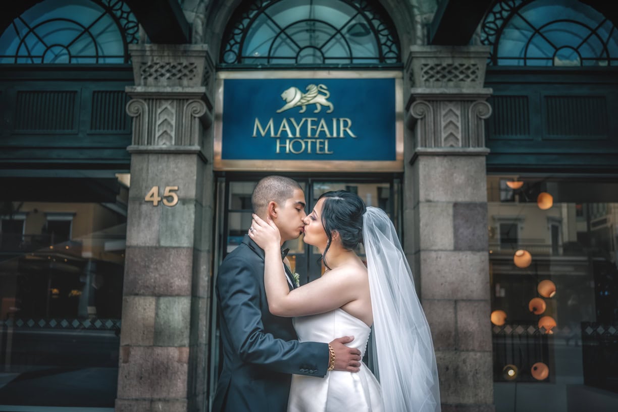 For location photos the wedding party made their way to the Mayfair Hotel’s Hennesy Bar for a couple of drinks while taking photos of the Newlywed’s & Bridal party. Once drinks were down we proceeded to Peel St just around the corner for on street photography and cheeseburgers.