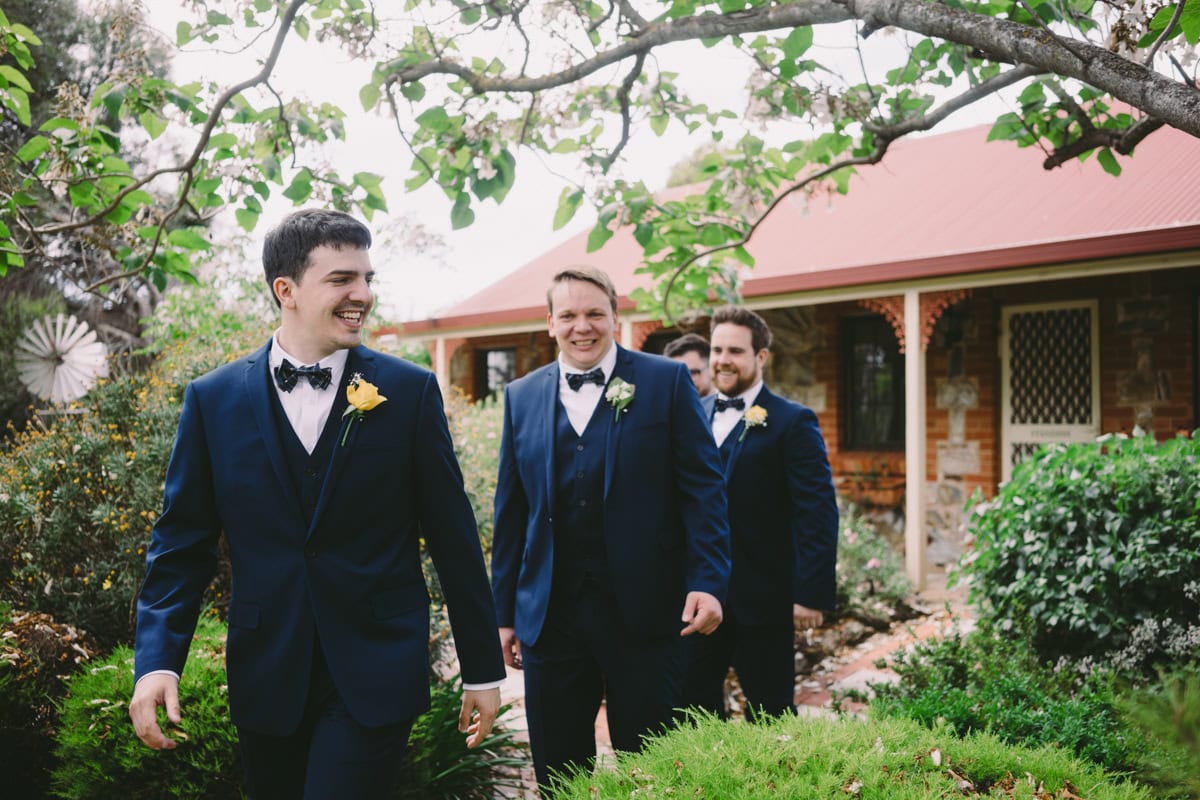 Meg and Alex were married at Langmeil Wines in October 2016. On the morning of the wedding, Alex and the boys prepared at a local bed and breakfast. At the same time, Meg and the girls prepared on-site at Langmeil Wines. Bridal on Pultney supplied the wedding dress for Meg. For the bridesmaids, the dresses provided were by Forever New. For final touches, Meg’s hair was prepared by Kerry from Hairbella, while Chloe of Matildah Makeup did make-up.