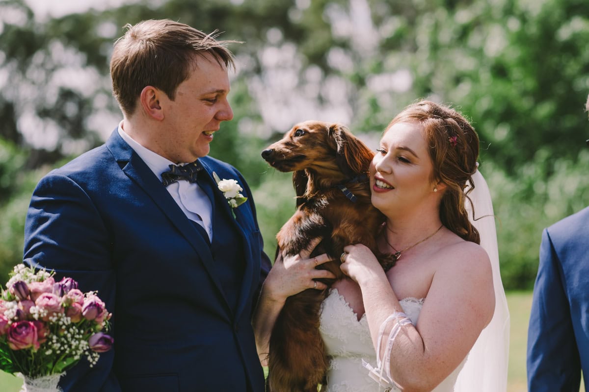Meg & Alex’s dog is officially a member of the bridal party during the ceremony at Langmeil Wines.