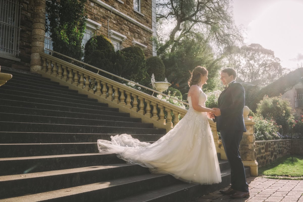 The Ceremony was held on the lawns of Langmeil Wines, with Kate Browne officiating proceedings. After the Ceremony, location photos were conducted on Menglers Hill lookout, with panoramic views of the Barossa serving as the backdrop. Afterwards, couple photos were conducted on the front steps of Chateau Yaldara and amongst the surrounding gardens.