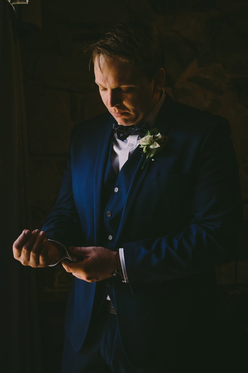 Alex making final adjustments to his cufflinks.